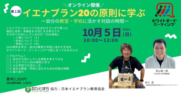 イエナプランの20の原則に学び、自分の教室や学校に活かすファシリテーションを体験します。ぜひ、ご参加ください。